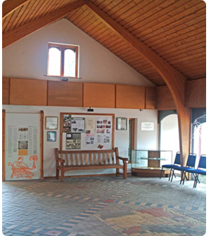 Mae yna hefyd deilsen canoloesol i’w weld yn y ganolfan sydd yn deillio o Abaty Hendygwyn, Abaty Sistersaidd a sefydlwyd yn 1151. Mae’r deilsen yn arddangos Oen Duw yn chwifio baner, a nifer o symbylau eraill. Ar ddiwrnod braf gall ymwelwyr casglu copi o’r pamffled ‘Heddwch a Threfn’ sydd yn cynnwys manylion ar daith gerdded o’r Ganolfan i adfeilion yr Abaty hynafol.